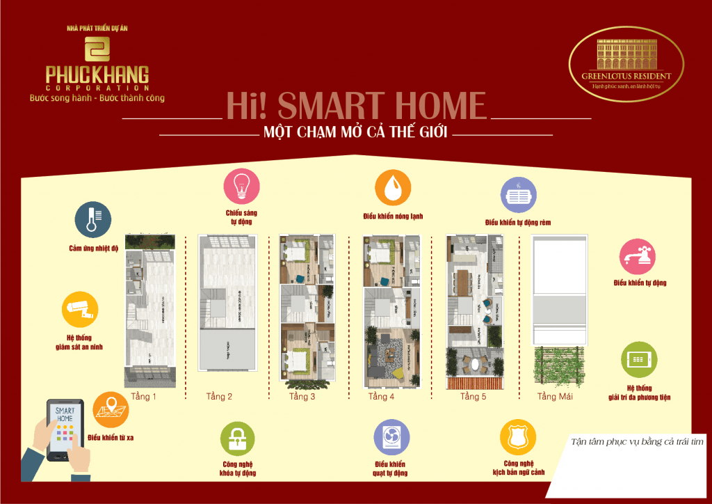 • Ứng dụng công nghệ Smart home mang đến bạn nhiều tiện ích, trải nghiệm cuộc sống đầy tiện nghi trong ngôi nhà của bạn.