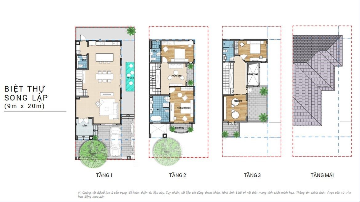 +Diện tích sàn xây dựng: 175 – 211 m²