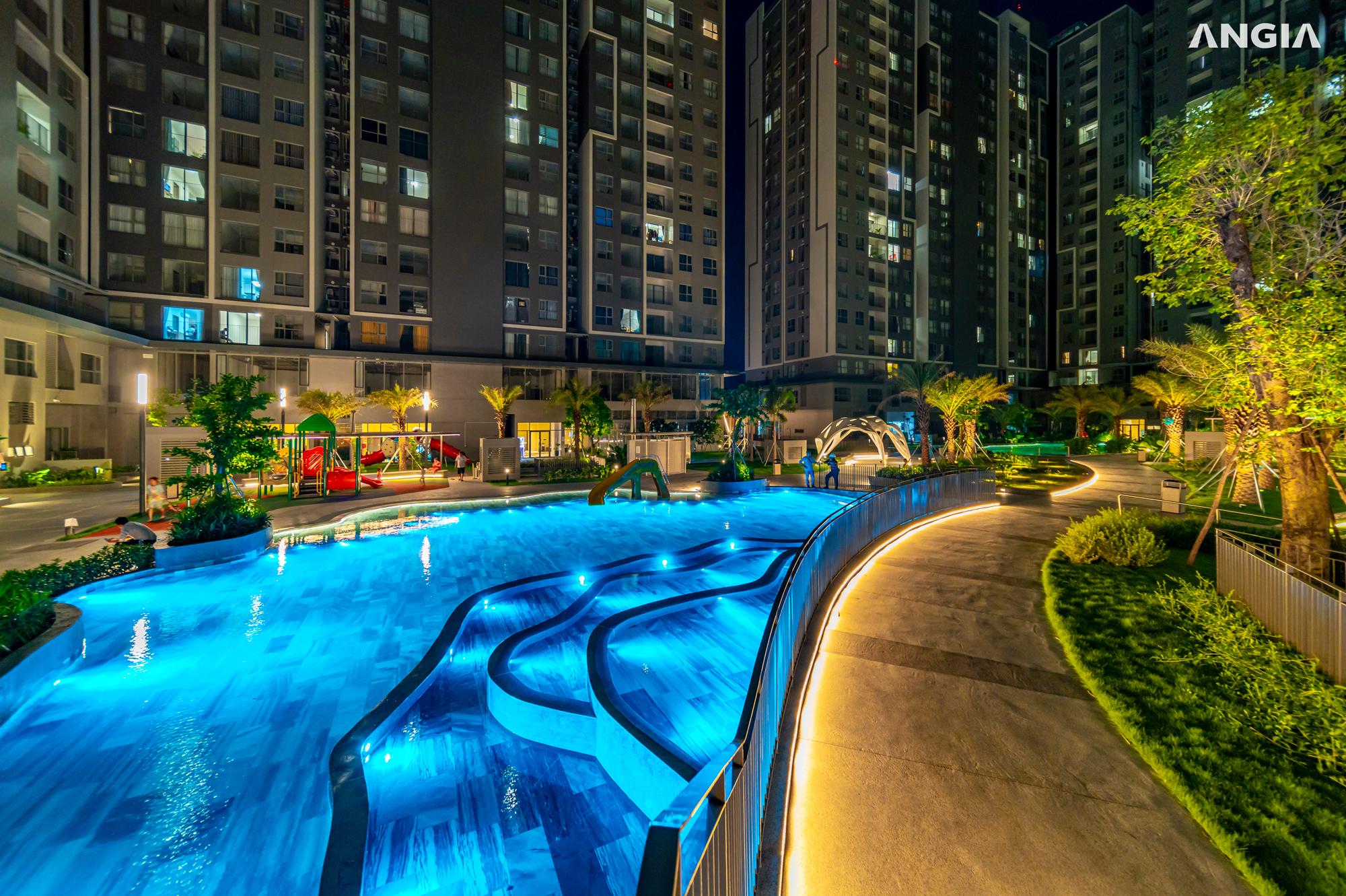 - Nội khu dự án dành gần 1.500 m2 diện tích mặt nước bao gồm hồ bơi người lớn, hồ bơi trẻ em, hồ cảnh quan, hồ thư giãn… được thiết kế hài hòa, hình thành vượng khí cho toàn khu vực.